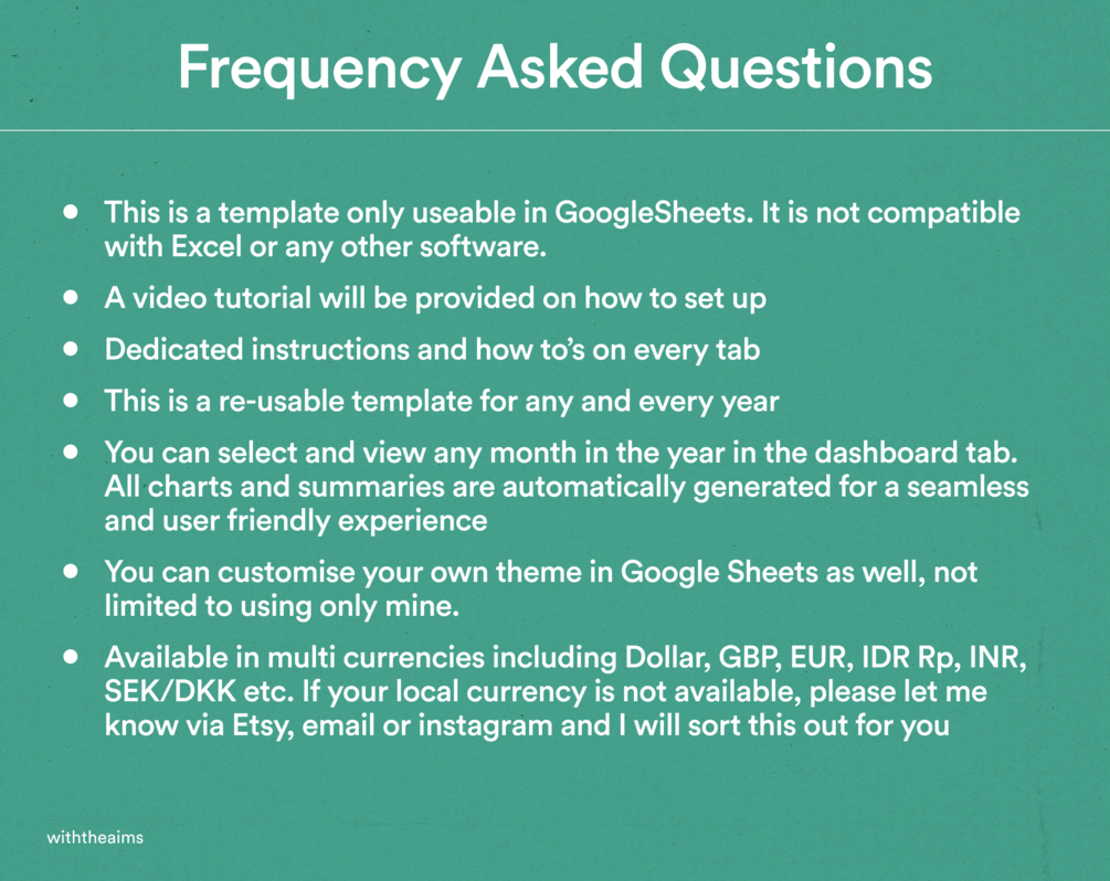 - The spreadsheet is ONLY COMPATIBLE with Google Sheets, not excel.