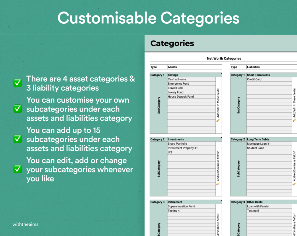 🌎 CURRENCIES: This net worth annual dashboard & tracker is available in and more: